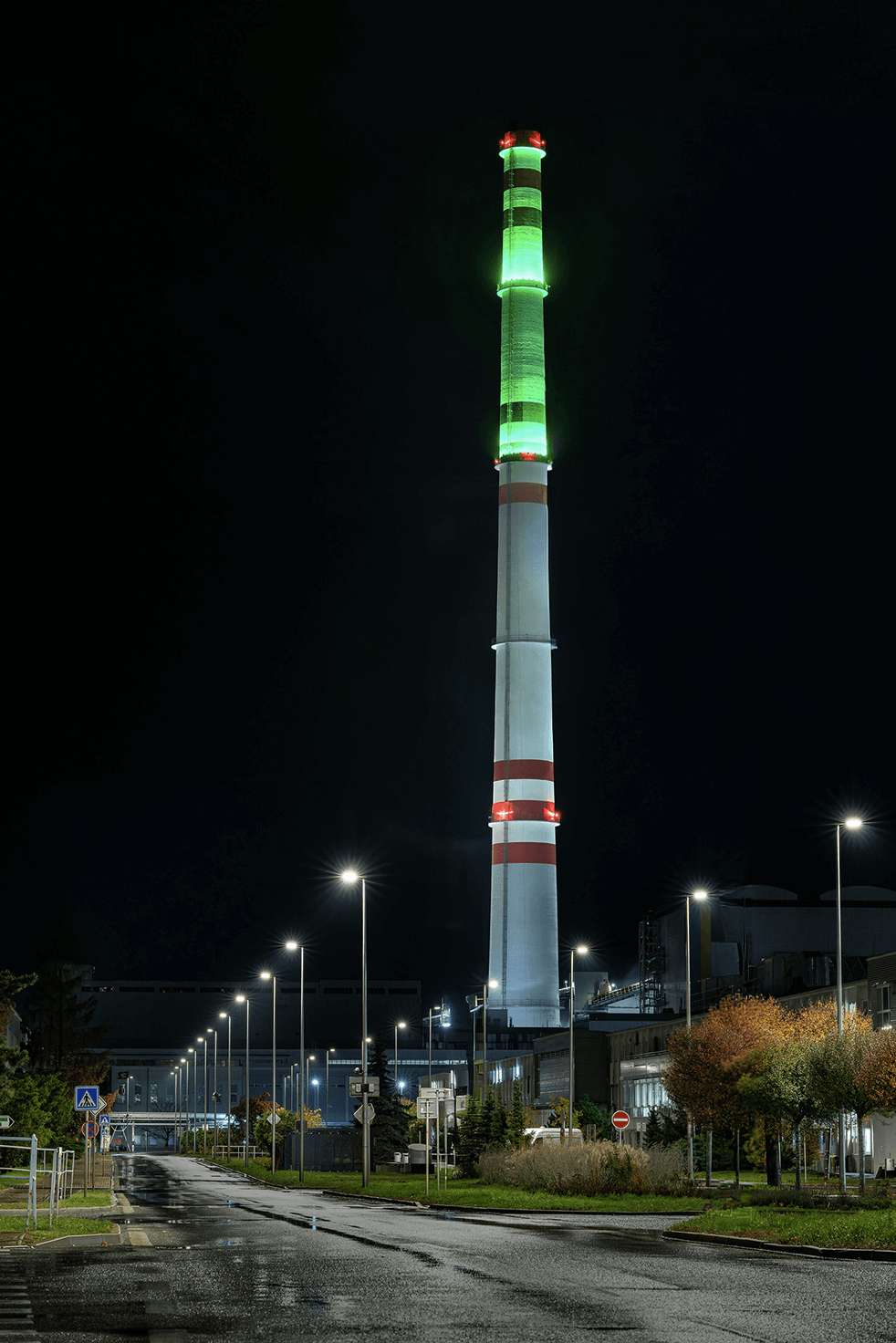 K oslavám 130 let Škoda Auto jsme připravili speciální nasvícení 200metrového komínu teplárny ŠKO-ENERGO – vůbec poprvé v historii. Horní část komínu rozzářilo 48 reflektorů v ikonické zelené barvě značky, a to symbolicky 28. října, v den českého státního svátku. Osvětlení připomnělo nejen výročí automobilky, ale také 30 let společnosti ŠKO-ENERGO. Termín byl zvolen s ohledem na sokolí pár, který na komíně každoročně hnízdí. Výsledkem se stala působivá světelná dominanta viditelná napříč Mladou Boleslaví – tichý symbol tradice, inovací a kontinuity.