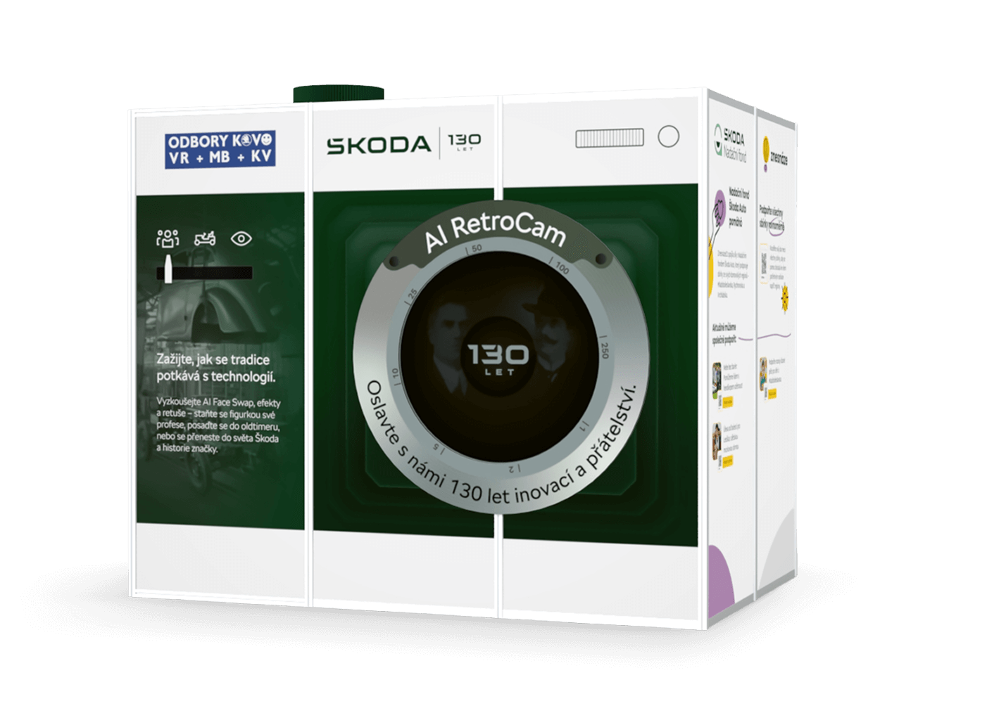 Fotobudka nabídla AI efekty, face-swap se světem Škoda i možnost přidat osobní vzkaz, který se zobrazoval v živé digitální galerii. Součástí byla také možnost přispět přes QR kód na charitativní projekt. Jednoduchý proces focení zajistil, že si každý zaměstnanec odnesl vlastní fotografii i zážitek spojený s oslavami výročí.